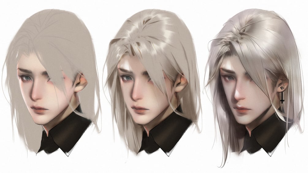 今回は二番目のヘアスタイル、風にたなびくようなロングヘアをデモンストレーションします。滑らかな髪が顔まわりにそっと落ち、神秘的で優雅な貴族の雰囲気を演出します。ロングヘアはいつも独特の魅力を放ち、私のお気に入りのスタイルのひとつです。