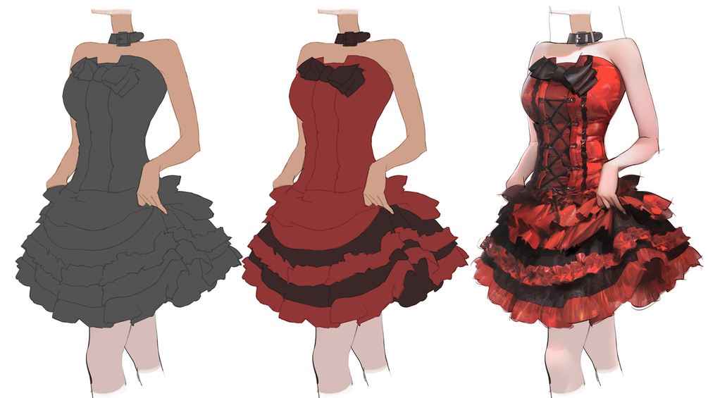 今回は、ゴシック風の赤と黒のミニドレスを描いてみます!高校時代、私はゴシックファッションを着た女の子を見るのが大好きでした。レースやリボン、クロスの編み上げを組み合わせたこのスタイルは、優雅さと神秘さが同時に漂う魅力があります。今回のデモでは、多層スカートの質感、半透明の生地の繊細な表現、そして光の下での立体感の出し方を紹介します。華やかさの中に少しダークな雰囲気を持つ服が好きな方は、ぜひお見逃しなく!
