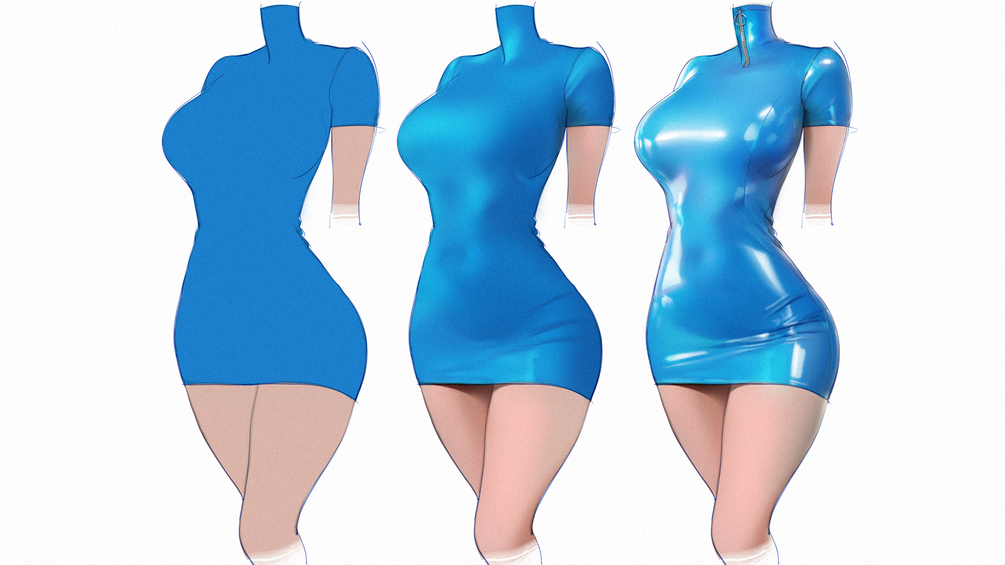 How to Draw a Blue Latex Dress? In this tutorial, you'll learn how to illustrate the smooth and shiny surface of a latex dress. Use specific colors and apply light and shadow effects to enhance the texture, ultimately creating a realistic glossy finish. Perfect for those who enjoy drawing sexy clothing!