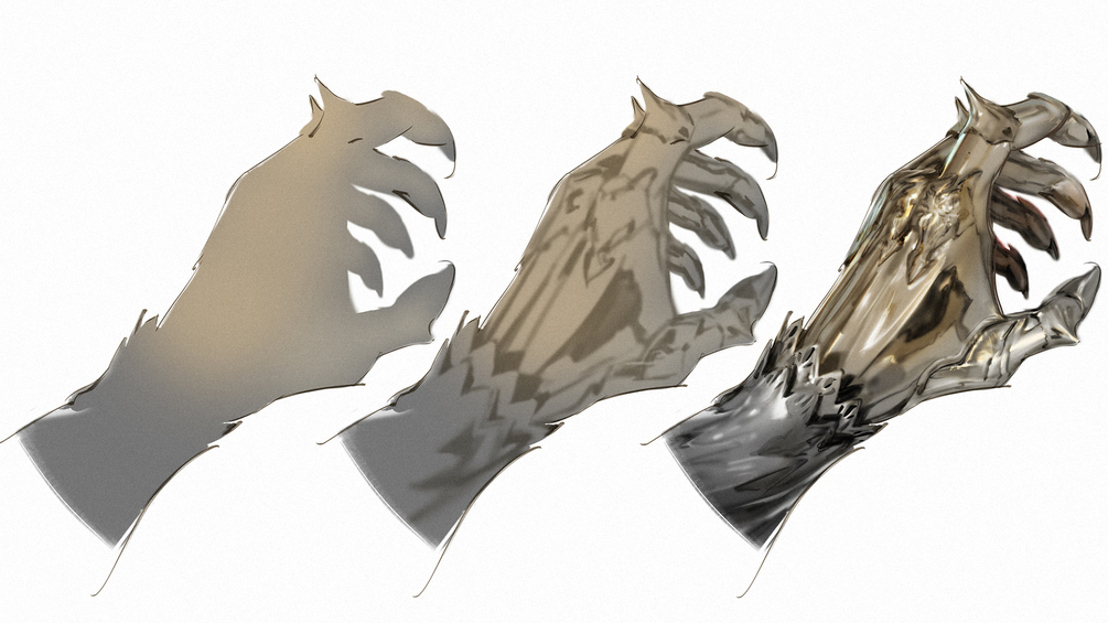 これにより、銀色の反射表現をより理解しやすくし、全体に重量感と立体感を加えます。