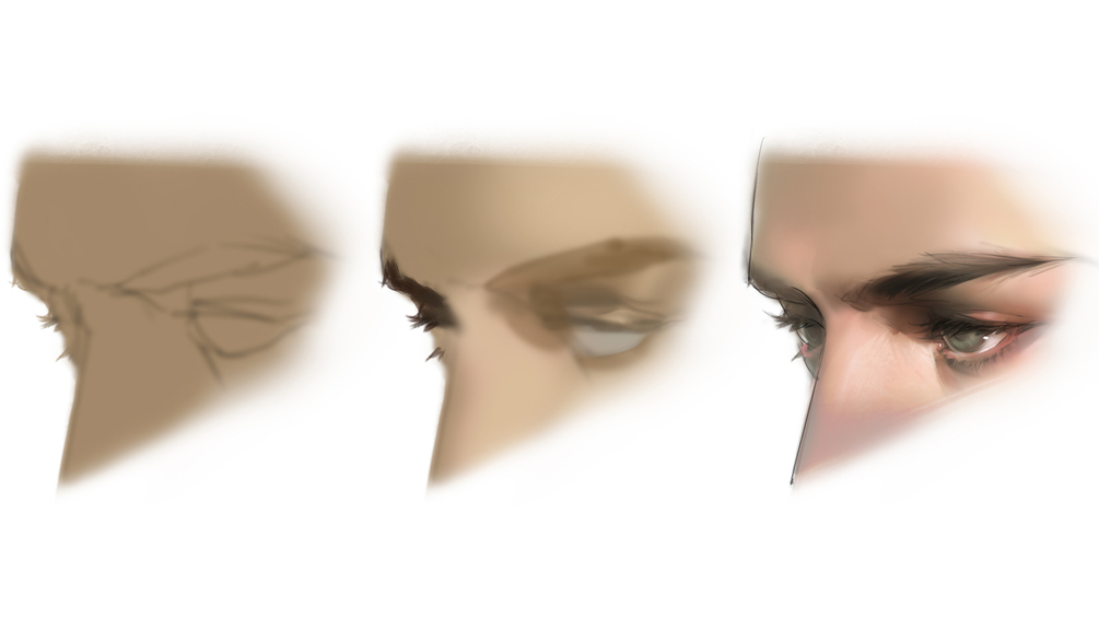 This product demonstrates how to draw a pair of male eyes from a diagonal side angle by combining different layers!