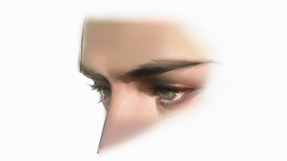 本商品將示範如何透過不同的圖層組合,畫出一雙斜側面角度時男性的眼睛!