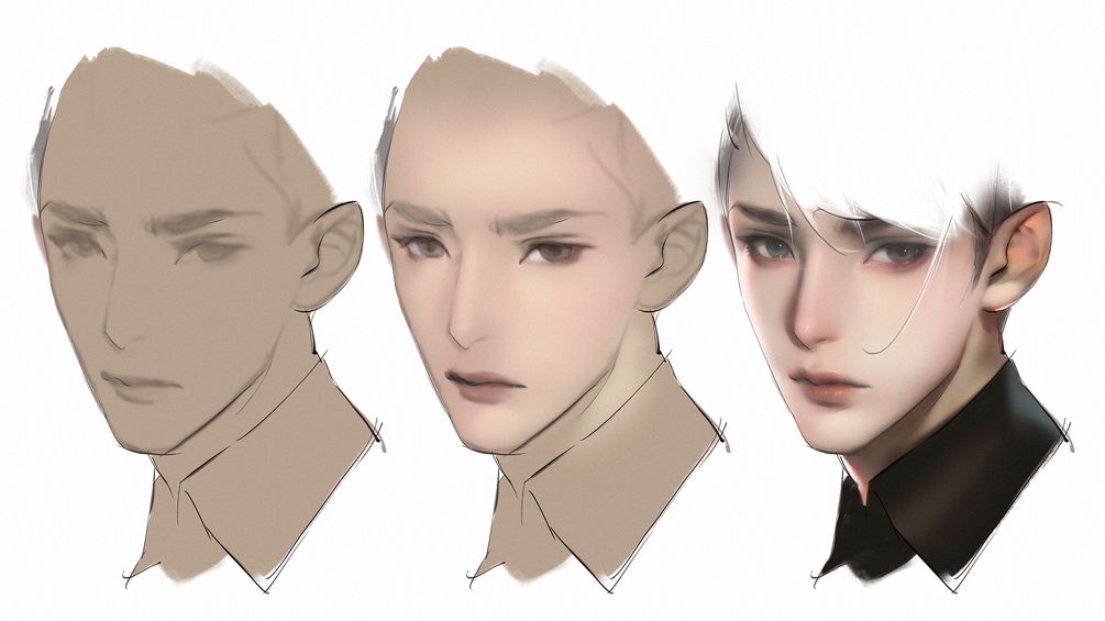 先日、視聴者の方からショートヘアのデモをリクエストされたので、今回は男性の斜め横顔の顔型と構造からスタートし、基本的な輪郭や五官の配置の描き方、光と影や肌色で立体感を演出する方法を紹介します。今後数週間、この基本フェイスをベースにさまざまな髪型デザインを順次デモし、ヘアスタイルと顔のラインの多彩な組み合わせを一緒に探求していきますので、お楽しみに!