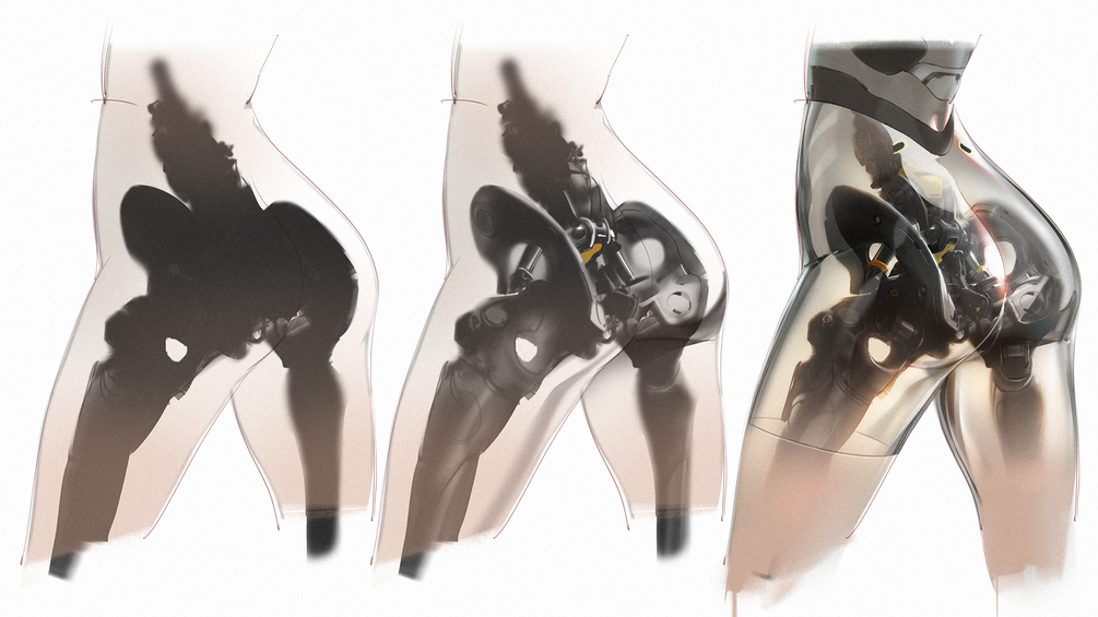 如何畫透明的機械大腿? 這個教學專注於描繪科幻般透明材質,搭配機械大腿的組合。學習如何展示機械關節、及機械元件如何與人體形態融合的細節。非常適合那些對將人體與機械結合的設計有興趣的你喔!