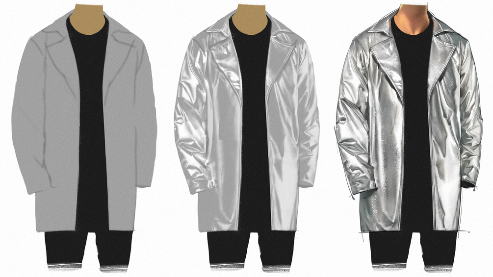 這次要示範的是一件充滿未來感的 金屬質感銀色外套!高反光的表面在光影變化下能展現強烈的金屬氛圍。示範中我會拆解光影二分的處理方式,並透過布料褶皺與高光細節,讓銀色層次更加立體鮮明。如果你想挑戰金屬布料的表現,那這次的教學絕對不能錯過!